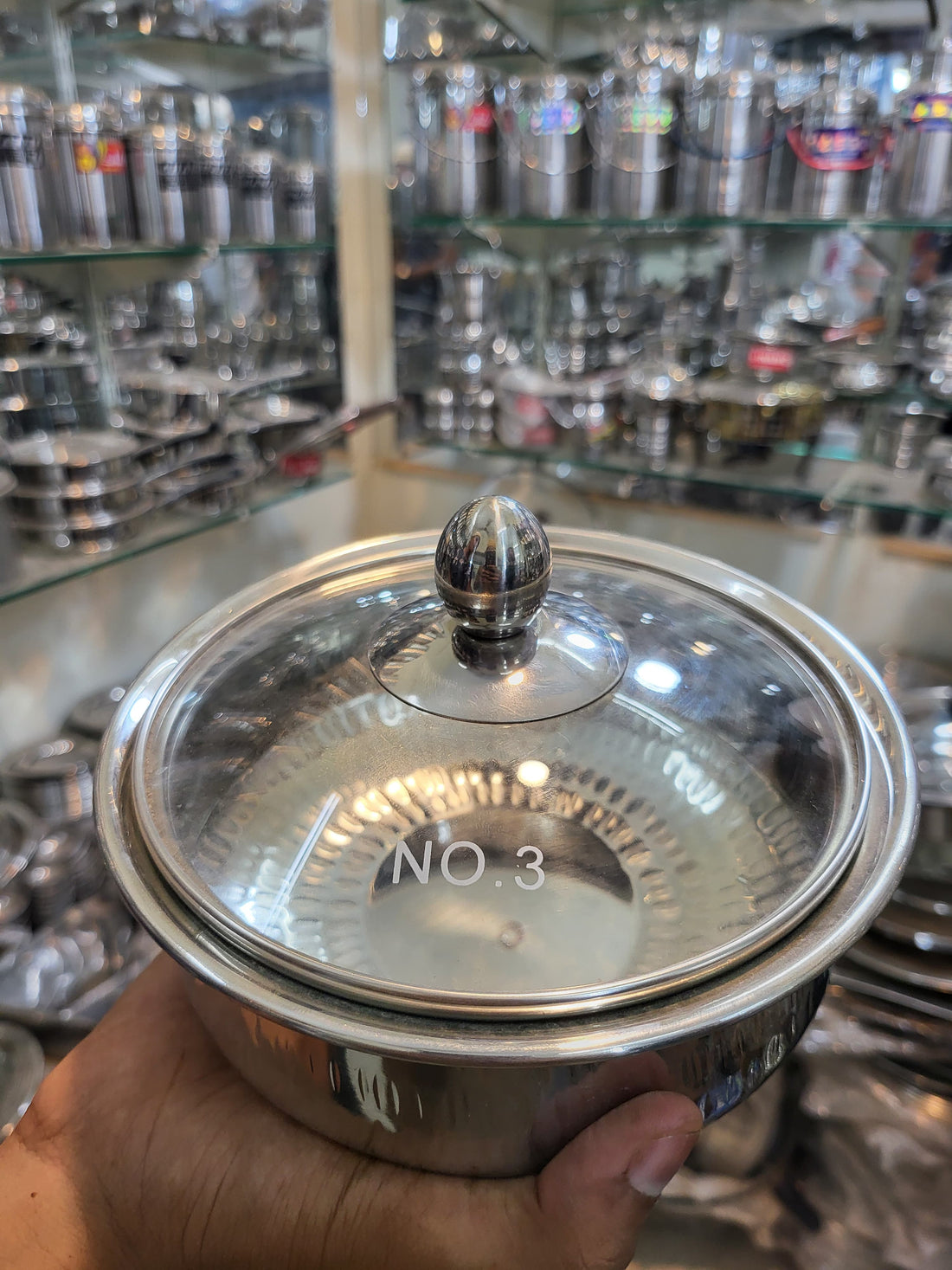 Stainless Steel Hammered Serving Handi with Glass Lid