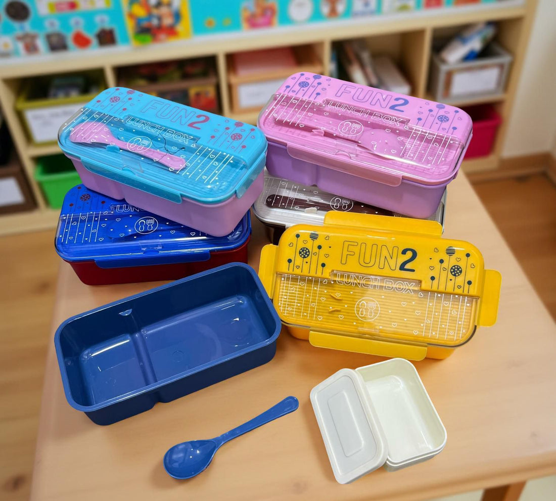 Fun2 LeakProof LunchBox with 2 Compartments 1 Mini Food Box and Spoon (Mix/Random colour)