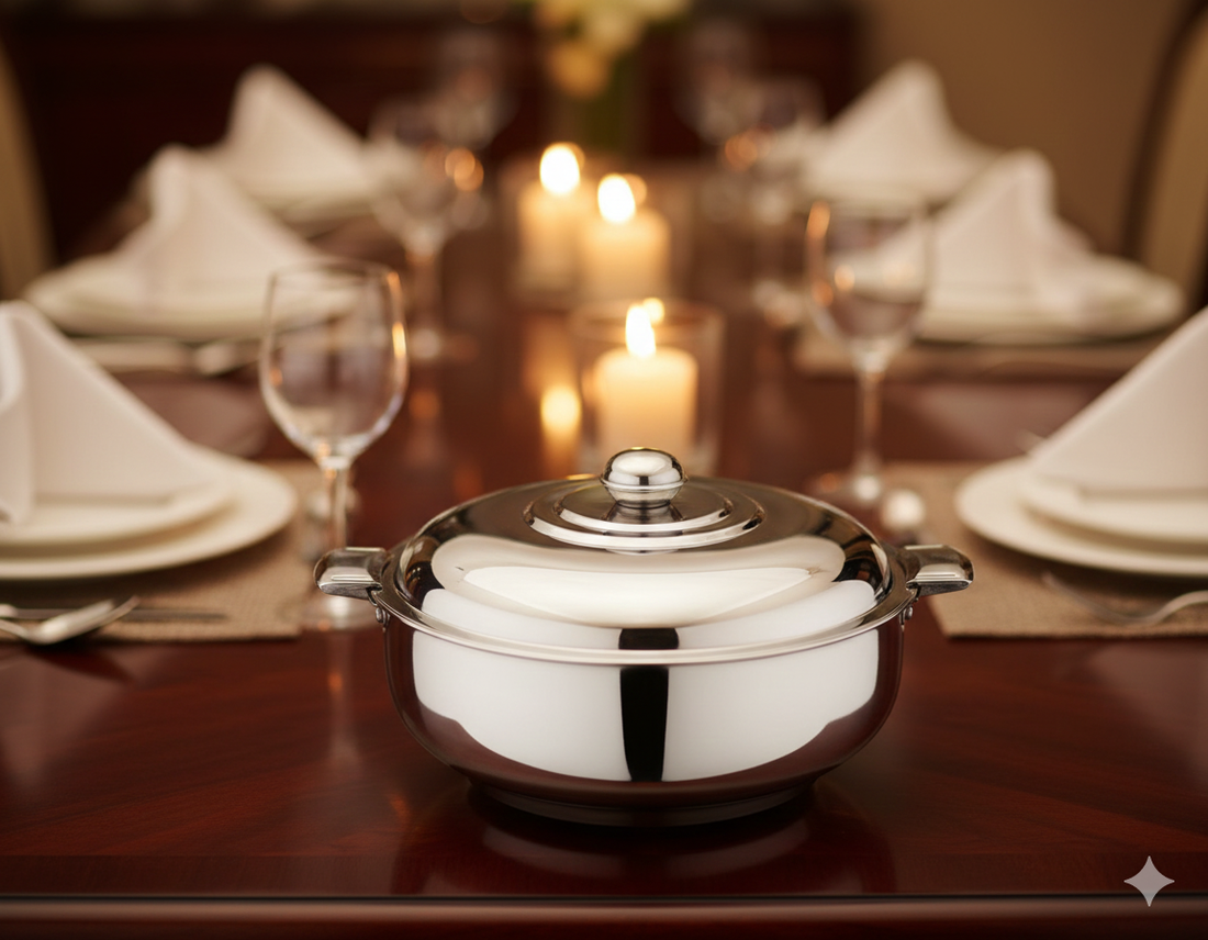 Alpha Stainless Steel Buffet dish with Burner and glass lid