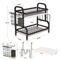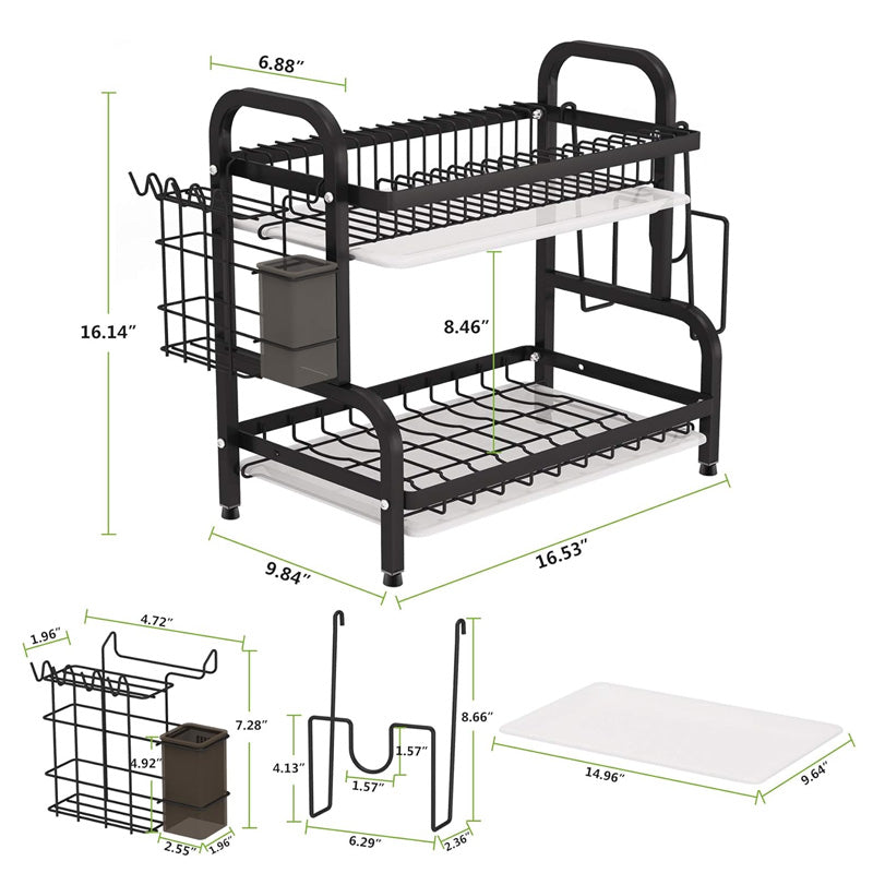 - The dishes rack has 2 water drain trays at the bottom, which can collect and organize the dripping water from the 2 tier dish drainer rack, you just need to clean the trays after collection, keep the countertop dry and clean.