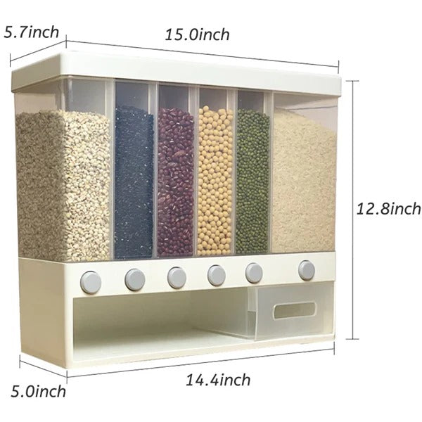 Wall-Mounted 6 Grid Cereal & Dry Food Dispenser