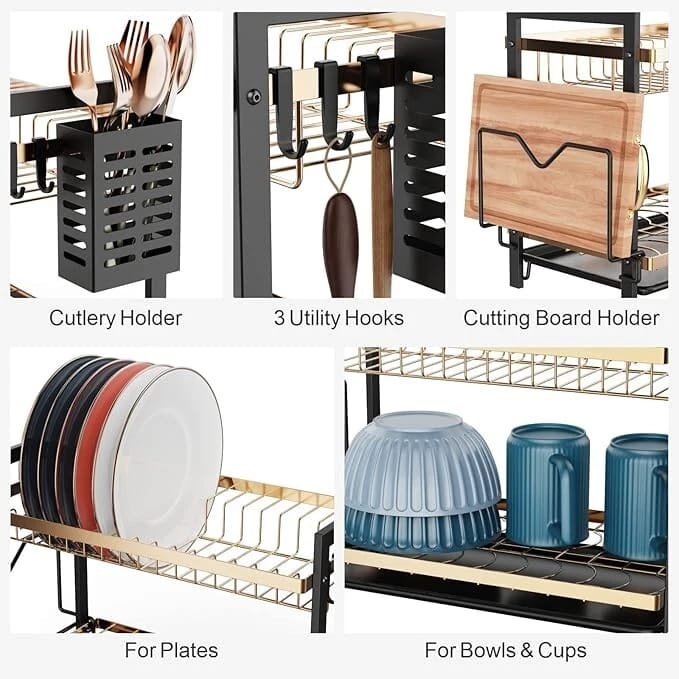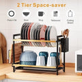 Dish Drainer - 2 Tier Dish Drying Rack with Drip Tray, Sink Draining Board