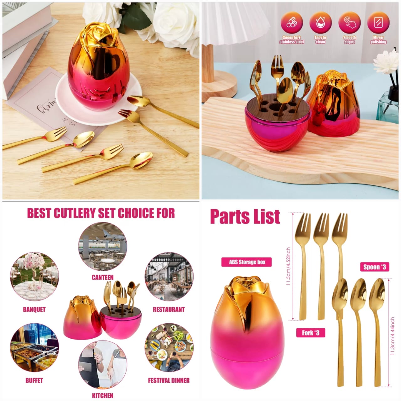 Brighten up your dining space with this trendy and elegant cutlery holder shaped like a blooming flower! With its glossy, metallic finish and vibrant colors, this decorative piece not only stores your essentials but also adds a luxurious touch to your kitchen or table.