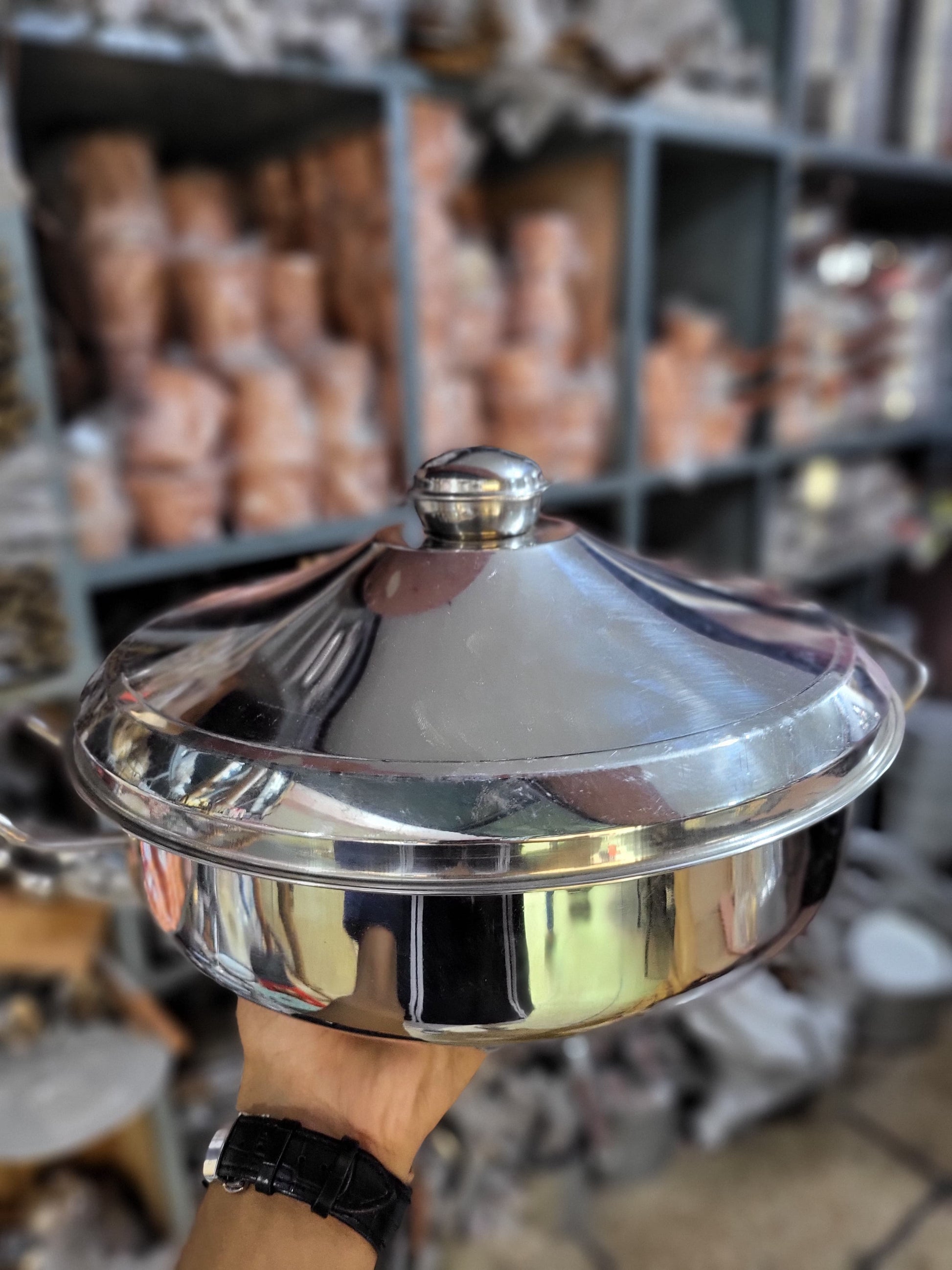 Keep your meals warm and ready to serve with the elegant Gogi Stainless Steel Insulated Hot Pot. This serving dish is designed to effectively retain heat, making it perfect for keeping curries, rice, gravies, or freshly cooked rotis at the ideal temperature for the dining table. The hot pot features a durable, polished stainless steel body and a sleek domed lid, which helps to lock in steam and flavor. With its sturdy handles and sophisticated design, this Gogi hot pot is a practical and stylish addition to any kitchen or dining setup, ideal for both everyday use and special occasions.