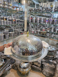 Hammered Stainless Steel Dome Serving Platter / BBQ Platter with Lid