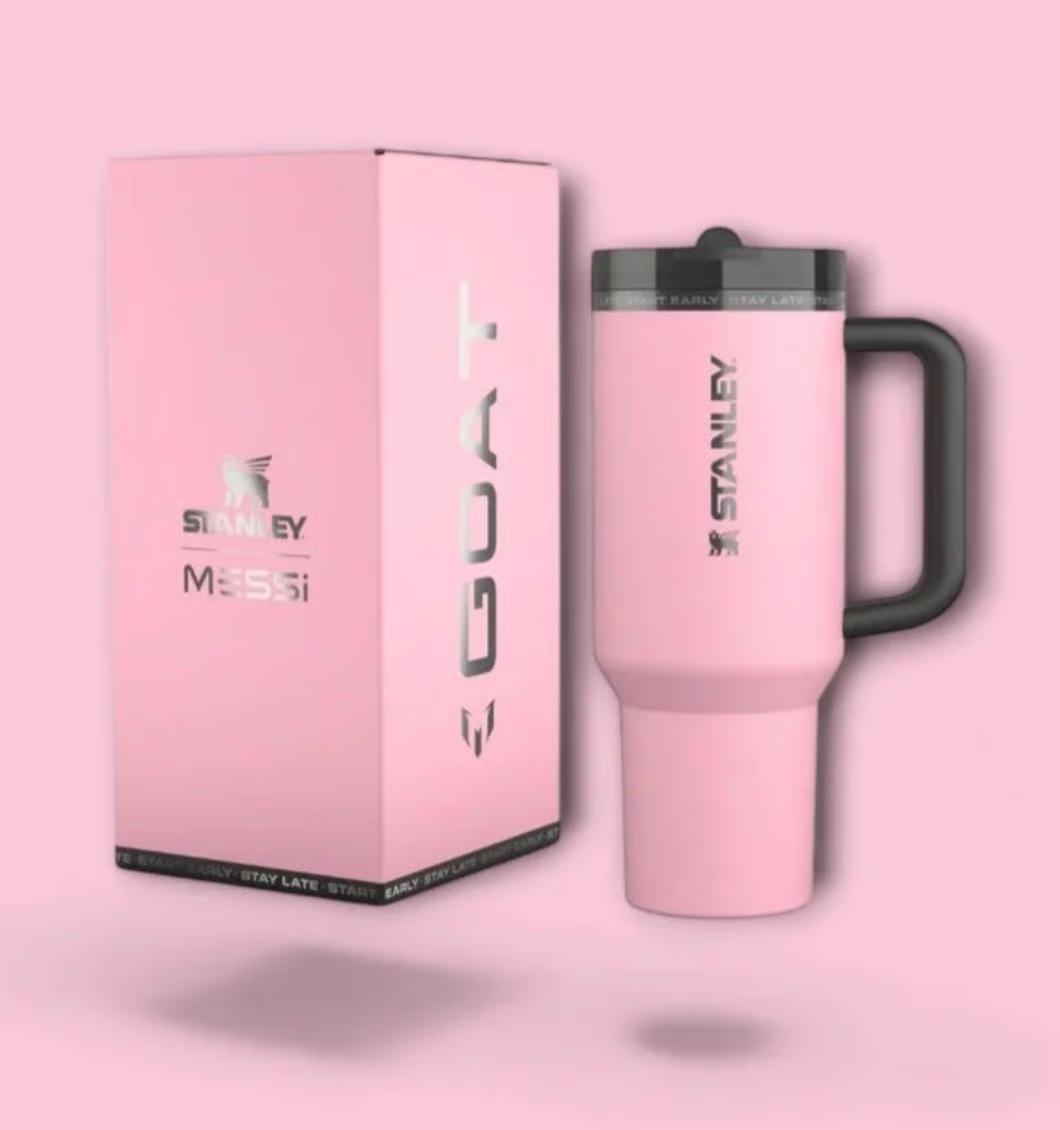Design:A 40 oz tumbler in a pink color, with "GOAT" (Greatest Of All Time) branding, often associated with Messi.Features: