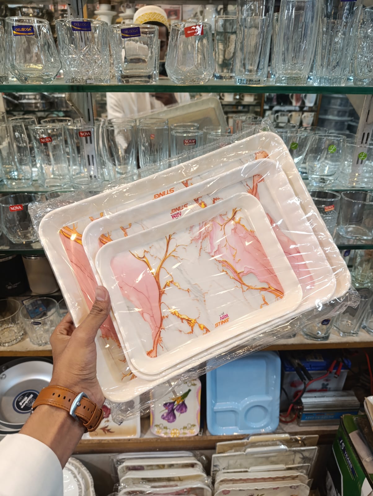 Enhance your serving style with this premium 3-piece tray set, featuring a small, medium, and large tray to suit every occasion. Each tray is finished with a high-gloss double glaze that provides a glass-like shine and superior resistance to scratches and stains. Built to be both lightweight and durable, this set is available in multiple sophisticated designs, including Luxurious Pink Marble, Black & Gold Marble, and Timeless Floral patterns. It is the perfect unbreakable solution for elegant hosting and daily use.