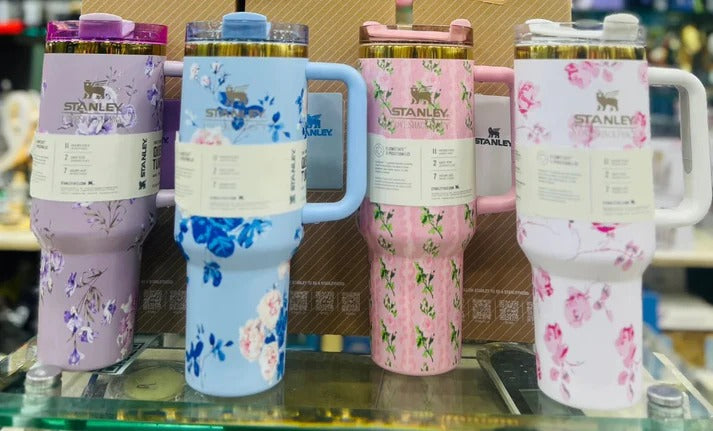 Stainless Steel Flower Design Tumbler with Lid – Vacuum Insulated Car Mug