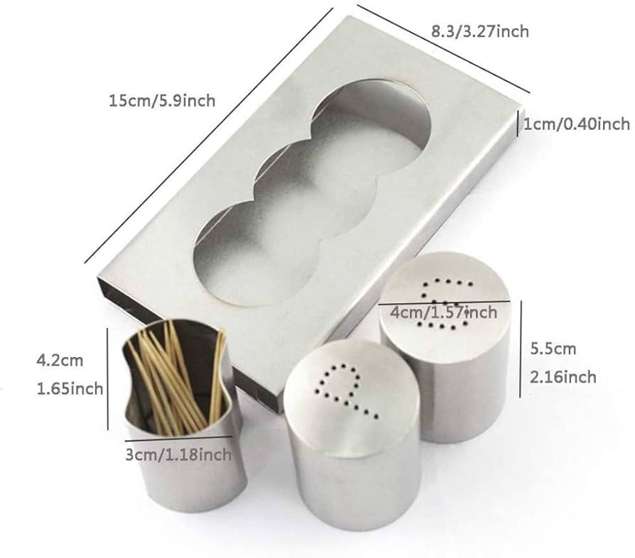 Elevate your dining table or kitchen counter with this sleek and functional Stainless Steel Salt and Pepper/Spice and Seasoning Set. Crafted from durable, rust-resistant stainless steel, this modern set includes stylish containers for salt, pepper, or your favorite spices—plus a convenient toothpick holder for added versatility. The minimalist design blends perfectly with any kitchen decor, while the transparent viewing windows help you monitor spice levels at a glance. Ideal for home use, restaurants, or gifting, this set combines form and function in one elegant package.